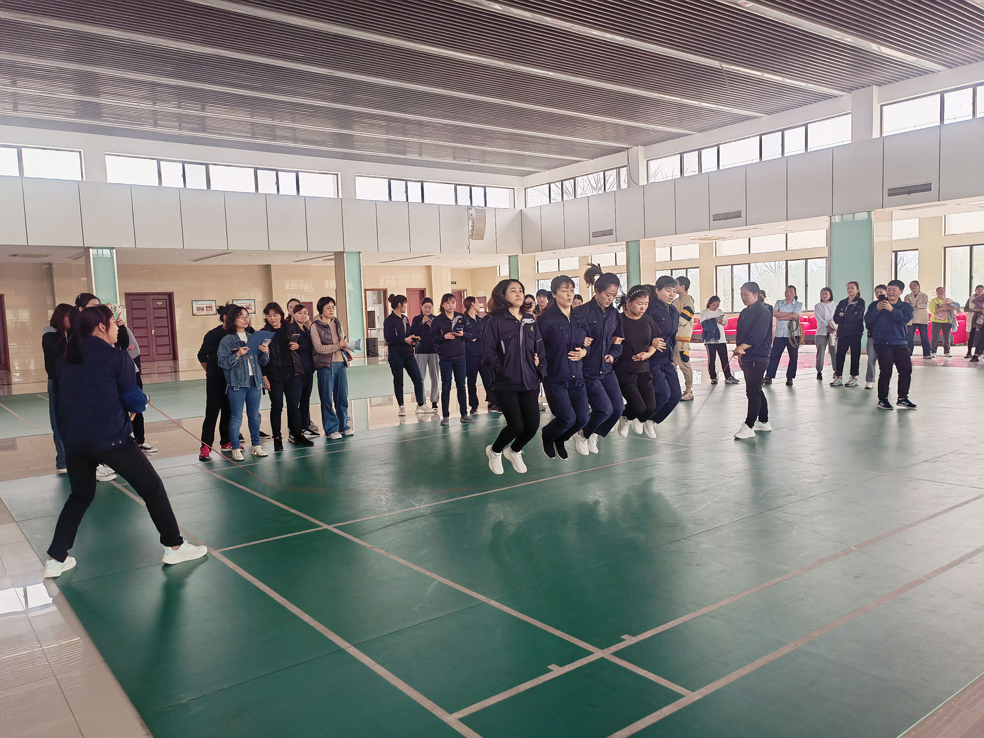 本次“三八”節(jié)系列文體活動(dòng)設(shè)有“單人跳繩”“踢毽子”“7人集體跳繩”三個(gè)項(xiàng)目,共有119名女職工積極響應(yīng),踴躍參加。各項(xiàng)目比賽過(guò)程緊張有序、趣味橫生。參賽隊(duì)員們個(gè)個(gè)精神飽滿,積極拼搏、奮力爭(zhēng)先。特別是體現(xiàn)團(tuán)隊(duì)力量的集體跳繩項(xiàng)目,通過(guò)隊(duì)友間的有效配合,使大家增強(qiáng)了團(tuán)結(jié)協(xié)作精神和集體榮譽(yù)感。