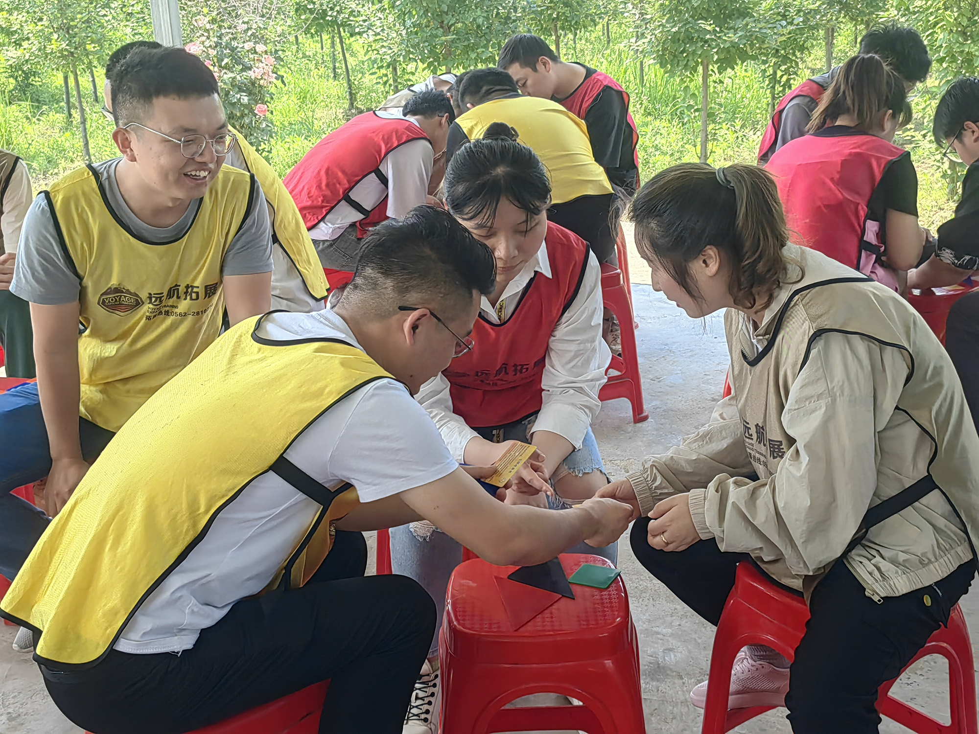 團建活動中,青年員工分組參與,先后開展了“破冰游戲”“巧拼七色板”“自助燒烤”“真人CS對抗”等趣味團建活動?;顒又写蠹覉F結一心,吶喊助威,笑語連連,既有效釋放了工作壓力,加強了溝通交流,展示了青年員工們凝心聚力、團結互助、青春洋溢的精氣神,又在寓教于樂中強化了青年員工責任擔當、資源共享、分工合作、相互信任的團隊協(xié)作意識。